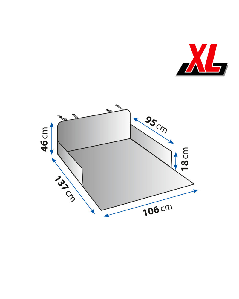Védőhuzat kutyák szállítására kombi, SUV vagy hatchback kocsik csomagtartóihoz. Kényelmes helyet biztosít a csomagtartóban szállított kutyáknak a puha, csúszásmentes alapnak, a magasított oldalfalaknak és a szagtalan és bőrbarát anyagból készült bélésnek köszönhetően. Hatékonyan védi az autó csomagtartóját az olyan, kutyaszállítás során keletkező szennyeződésektől, mint sár, szőr, víz vagy akár hányás és ürülék. A huzat meghosszabbított hátsó része védi a kocsi hátsó lökhárítóját a karcolásoktól a kutya csomagtartóba történő beszállása során. A kutya beszállása és szállítása során a huzat nem mozdul el. A huzat magas oldalai egy "vályút" alakítanak ki a csomagtartóban, amely megakadályozza, hogy a szennyeződések a huzatról a csomagtartóba kerüljenek át. A huzat vízálló alja a kutya kényelme és biztonsága érdekében alulról vastag habszivaccsal (szivaccsal) van laminálva. A huzat teljesen biztonságos, az Európai Unióban gyártott anyagokból készült.