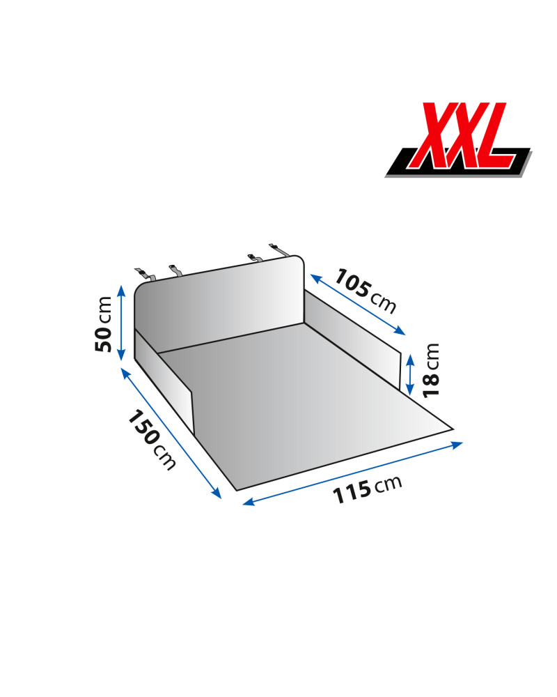 Védőhuzat kutyák szállítására kombi, SUV vagy hatchback kocsik csomagtartóihoz. Kényelmes helyet biztosít a csomagtartóban szállított kutyáknak a puha, csúszásmentes alapnak, a magasított oldalfalaknak és a szagtalan és bőrbarát anyagból készült bélésnek köszönhetően. Hatékonyan védi az autó csomagtartóját az olyan, kutyaszállítás során keletkező szennyeződésektől, mint sár, szőr, víz vagy akár hányás és ürülék. A huzat meghosszabbított hátsó része védi a kocsi hátsó lökhárítóját a karcolásoktól a kutya csomagtartóba történő beszállása során. A kutya beszállása és szállítása során a huzat nem mozdul el. A huzat magas oldalai egy "vályút" alakítanak ki a csomagtartóban, amely megakadályozza, hogy a szennyeződések a huzatról a csomagtartóba kerüljenek át. A huzat vízálló alja a kutya kényelme és biztonsága érdekében alulról vastag habszivaccsal (szivaccsal) van laminálva. A huzat teljesen biztonságos, az Európai Unióban gyártott anyagokból készült.