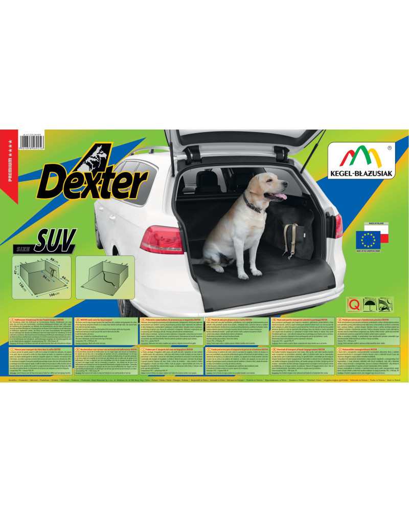 A DEXTER védőhuzat a kocsiban való kutyák kényelmes szállítását biztosítja – kényelmes az Ön számára és a kutyája számára is. Kényelmes az Ön számára, mivel nem kell takarítania a csomagtartót, miután a kutyáját szállította, kényelmes a kutyája számára, mivel a huzat alsó része habbal bélelt műbőrből készült, ami kényelmet biztosít, illetve csúszásgátló felületet. A Dexter autóhuzat egyaránt praktikus egyaránt elegáns termék, mely védi a kocsija belsejét. Védi a kárpitot a sártól, kosztól, szőrtől és különbözőféle karcolásoktól, melyeket a szállított kutya vagy csomagok okozhatnak. A huzat vízhatlan, ezen kívül nem ereszti át a szagokat sem.