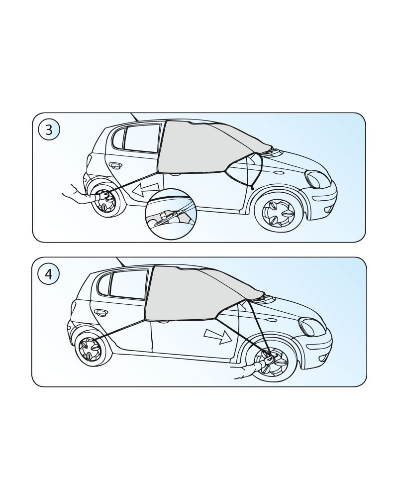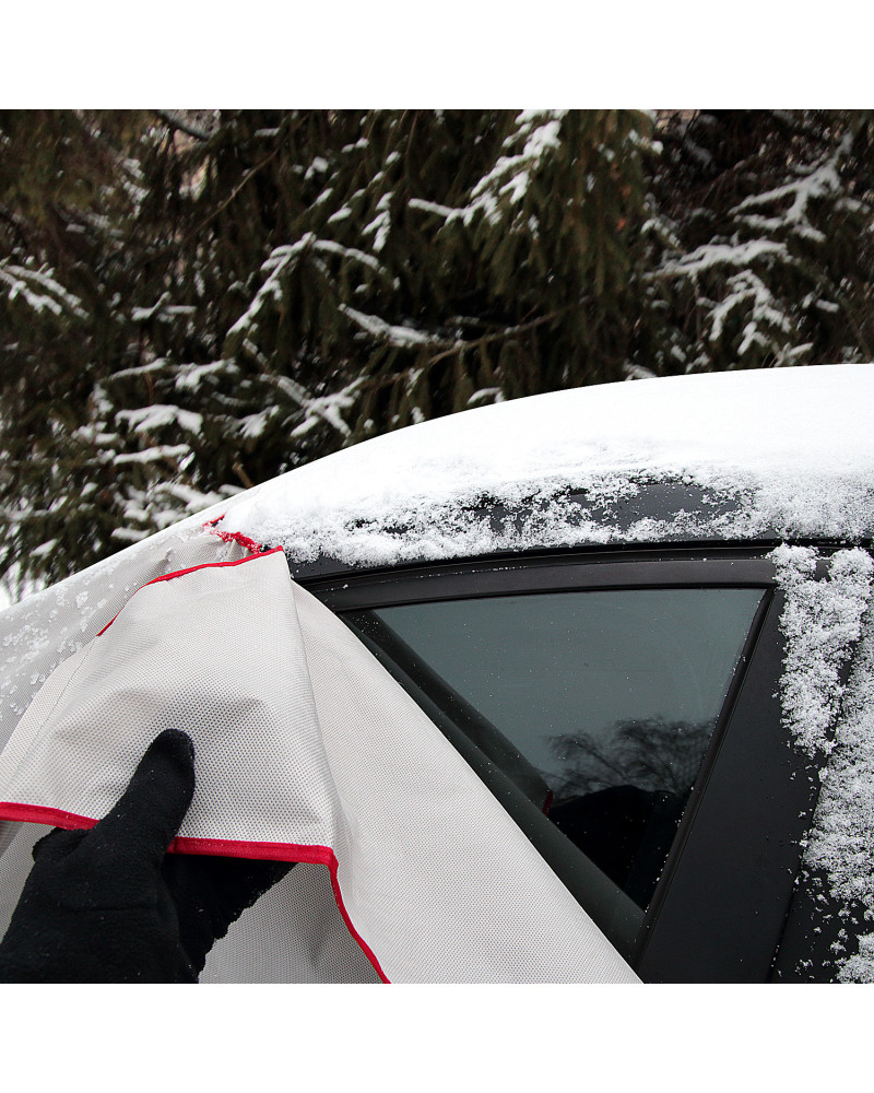 Nagyon praktikus védő, mely a szélvédőt, oldalsó ablakokat és a tükröket is védi a dértől, jégtől és hótól, amikor parkol a kocsijával. Ezen kívül gátolja a zárak befagyását. A védő jól fogja védeni a kocsi megadott részeit, Önnek pedig kényelmet és komfortérzetet biztosít. Spórolja meg az időt, kerülje el a fáradságos jégkaparást, és tartalékolja az energiáját egész napra – alkalmazza a WINTER PLUS (Basic Line sorozat) védőt. A védő magas minőségű SPUNBOND anyagból készült, egyenesen Németországból – nagyon erős, tartós, és mindenekelőtt olyan anyag, mely nem fagy oda. A kocsihoz gyengéd anyag nem okoz károkat, és nem karcol ablakokat. Nagyon könnyű feltenni és levenni, könnyű tisztítani. Az Ön kocsijának és az Ön érdekében! A sima WINTER védő elnevezést a PLUSZ-szal egészítettük ki, mivel nemcsak a szélvédőt, hanem két oldalsó ablakot és a tükröket is védi, melyek nélkülözhetetlenek ahhoz, hogy megfelelően lássuk az utat. A védőt nagyon könnyű feltenni és levenni, a rögzítésekor rá kell csapni az elülső ajtót, és fel kell tenni az oldalsó füleket a tetőhöz és a kocsi ajtajához.