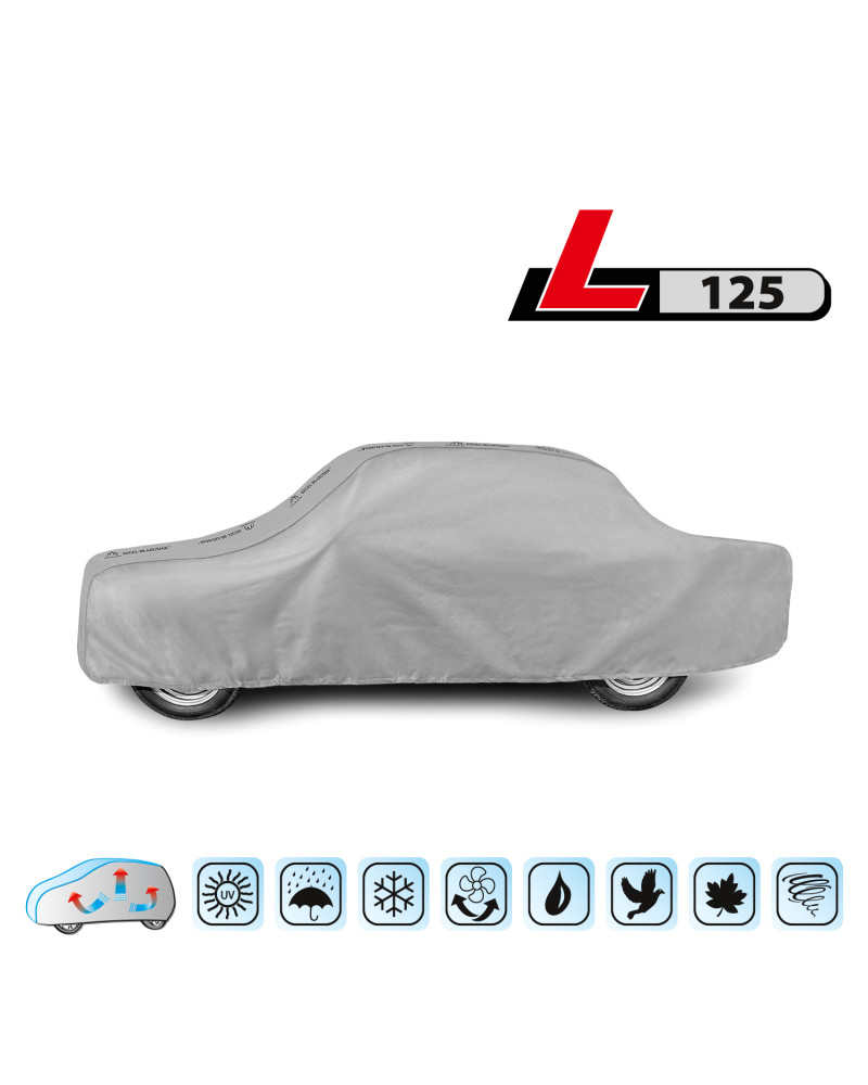 Nagyon jó minőségű, egész évben használható BASIC GARAGE autóhuzat – vízálló, és páraáteresztő. Mivel, két fajta anyagot használtunk a huzat majdanem teljesen vízálló, erős eső esetében is, és ugyanakkor amikor plusz fokok vannak kivezeti a huzat alatt összegyűlő nedvességet. A huzat védi az egész kocsit, az alsó részével együtt a környezet káros hatásától. A belső oddala sima anyagból készült, így nem karcolja a karosszériát. Huzatot egy összehúzó zsinorral rögzítjuk, amennyiben helyesen összekötjük erős széllökésektől is védi a kocsit. Mivel ebből a sorozatból származó huzatok több méretben, és több alakváltozatban kaphatók (ahogy más huzataink is), jól összepasszolhatók konkrét kocsival. A Basic Garage huzatok napálló-, környezeti hatásokra való tulajdonságait ellenőrizték, amit midnegyik termékhez adott, írásbeli, 25 hónapra szóló garancia igazol.