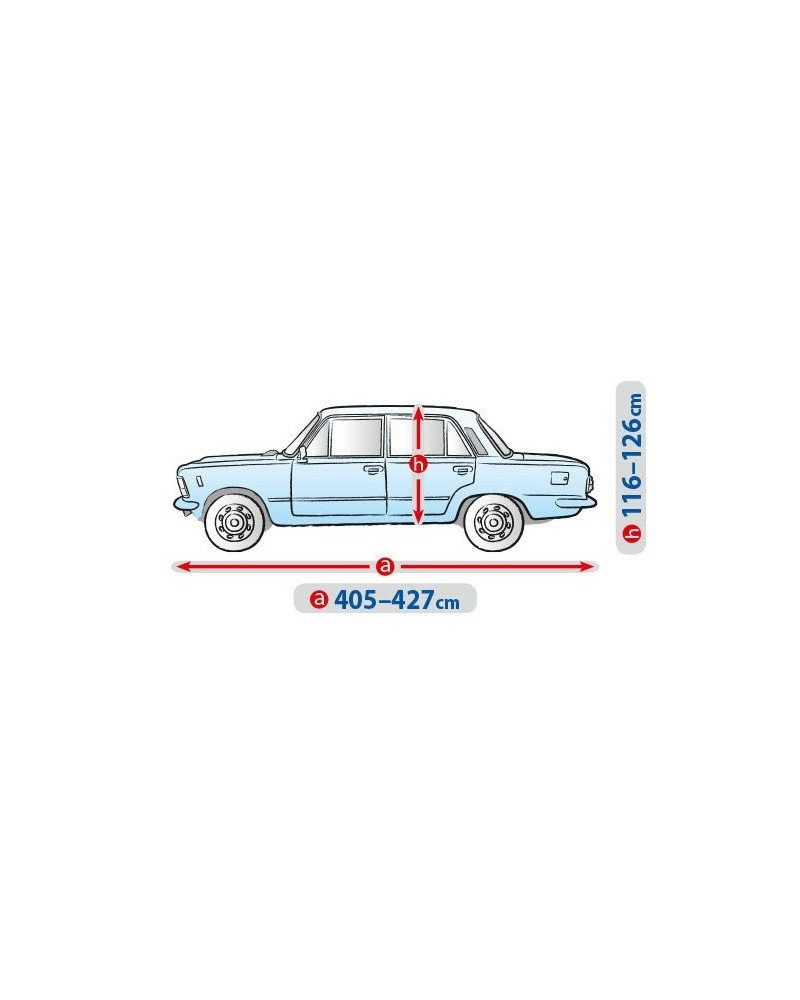 A ponyva textilanyaga egy kicsivel kisebb és egy kicsivel nagyobb, hasonló alakú és a fent megadott kerületet nem meghaladó méretű autóra is ráillik.