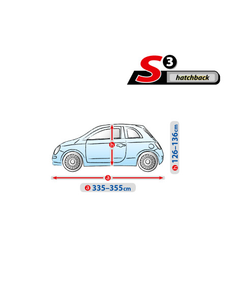 • Az alábbi méretekkel rendelkező járművekhez illik: hossza 335-355 cm, maximális kerület 1006 cm