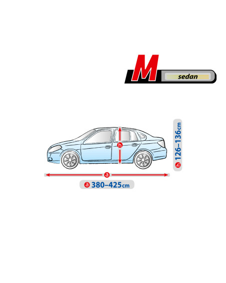 A ponyva textilanyaga egy kicsivel kisebb és egy kicsivel nagyobb, hasonló alakú és a fent megadott kerületet nem meghaladó méretű autóra is ráillik.