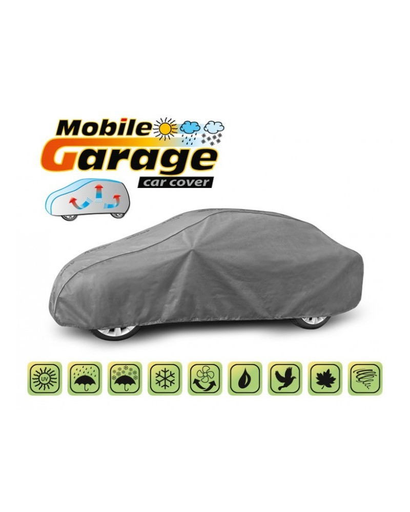 A magas minőségű, autókra való MOBILE GARAGE huzatok vízhatlanok, de páraáteresztőek. A huzat négyrétegű, vízhatlan, páraáteresztő membránból és nehezen vizesedő, de magas páraáteresztő képességgel rendelkező anyagokból készült, majdnem teljesen szoros, de ugyanakkor elvezeti a huzat alatt összegyűlő nedvet. Az egész kocsit, az alsó részével együtt védi a kedvezőtlen környezeti hatásoktól. A huzatok UV-sugárzás ellenállóak. A rögzítésük kocsit körbefogó zsinórral történik, megfelelően összekötve biztosítják a kocsit erős szél esetében is. Mivel az ajánlatunkban több alakban és méretben találhatóak, különböző kocsikhoz illenek. A 30 hónapra szóló garanciának köszönhetően biztos lehet abban, hogy a legmagasabb minőségű terméket vásárolja.