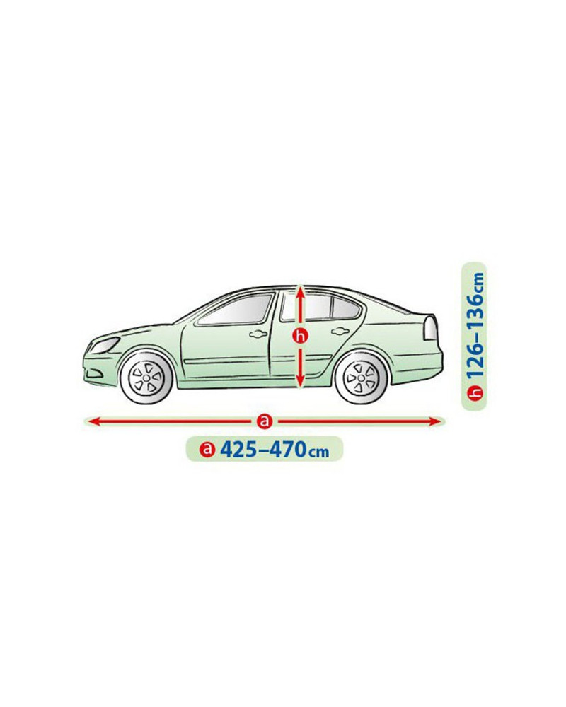 A ponyva textilanyaga egy kicsivel kisebb és egy kicsivel nagyobb, hasonló alakú és a fent megadott kerületet nem meghaladó méretű autóra is ráillik.
