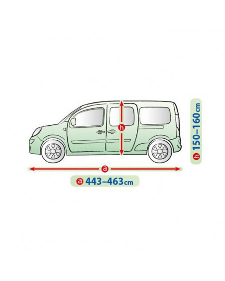 • Az alábbi méretekkel rendelkező járművekhez illik: hossza 443-463 cm, maximális kerület 1222 cm