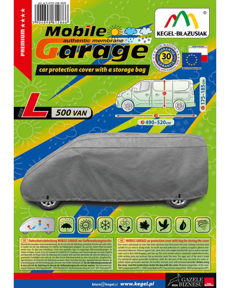 A magas minőségű, autókra való MOBILE GARAGE huzatok vízhatlanok, de páraáteresztőek. A huzat négyrétegű, vízhatlan, páraáteresztő membránból és nehezen vizesedő, de magas páraáteresztő képességgel rendelkező anyagokból készült, majdnem teljesen szoros, de ugyanakkor elvezeti a huzat alatt összegyűlő nedvet. Az egész kocsit, az alsó részével együtt védi a kedvezőtlen környezeti hatásoktól. A huzatok UV-sugárzás ellenállóak. A rögzítésük kocsit körbefogó zsinórral történik, megfelelően összekötve biztosítják a kocsit erős szél esetében is. Mivel az ajánlatunkban több alakban és méretben találhatóak, különböző kocsikhoz illenek. A 30 hónapra szóló garanciának köszönhetően biztos lehet abban, hogy a legmagasabb minőségű terméket vásárolja.