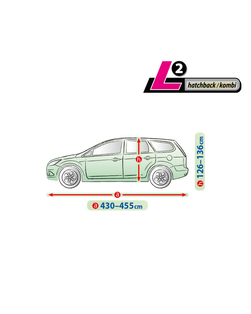 • Az alábbi méretekkel rendelkező járművekhez illik: hossza 430-455 cm, maximális kerület 1206 cm