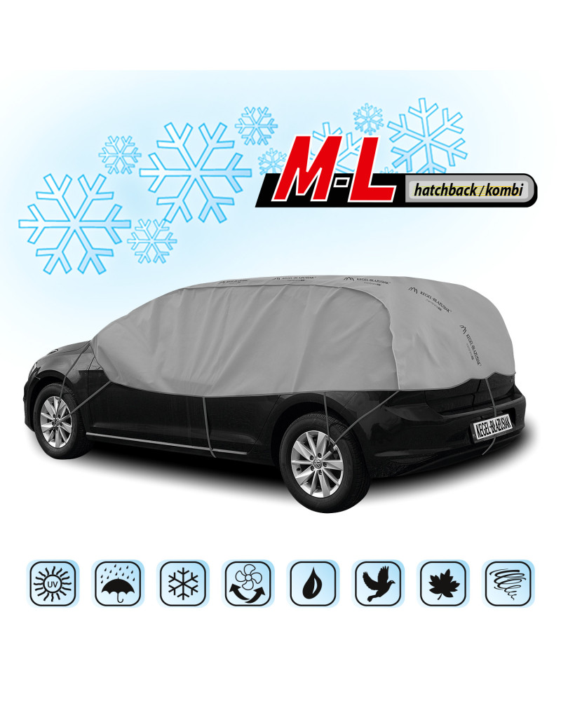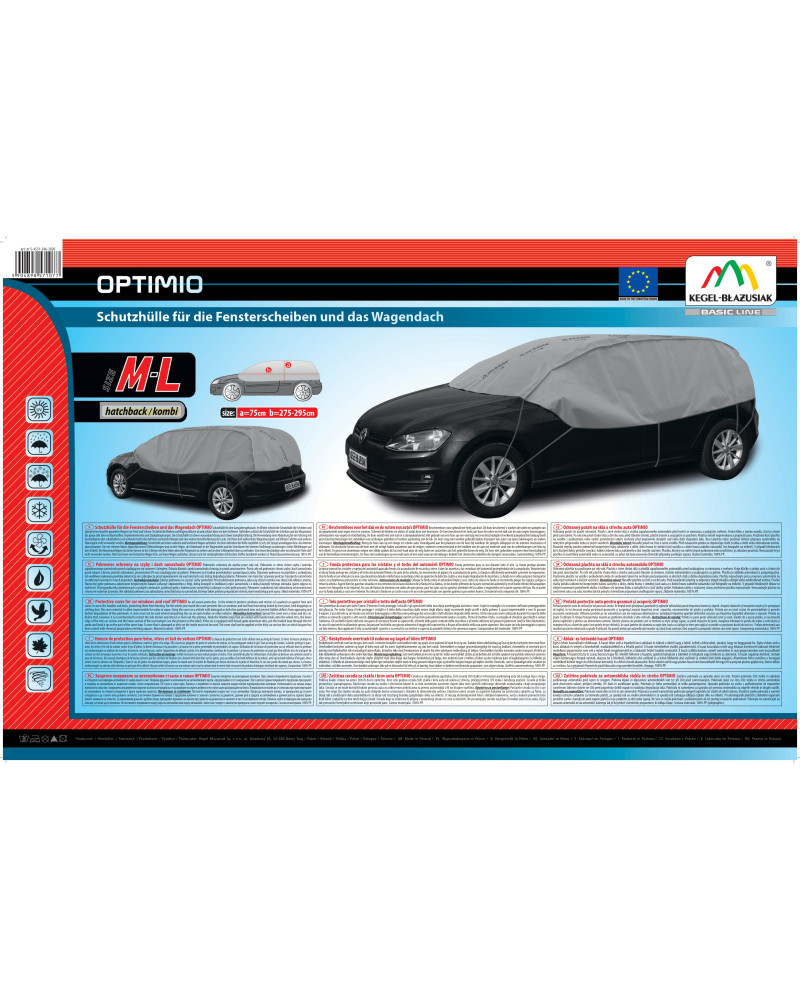 A OPTIMIO félponyvával lefedett kocsi nem hűl le gyorsan, amikor kint mínusz fokok vannak, nyáron pedig a WINTER OPTIMIO félponyvával lefedett kocsiban olyan hűvös lesz, mintha árnyékos helyen parkolna. A huzatok szürke színűek, így nagyon praktikusak, ugyanakkor nagyon jól mutatnak. A termék alkalmas arra, hogy állandó jelleggel vagy alkalmilag használjuk. Azon kocsitulajdonosok számára készült, akik saját garázzsal nem rendelkeznek, és kint hagyják a kocsijukat.