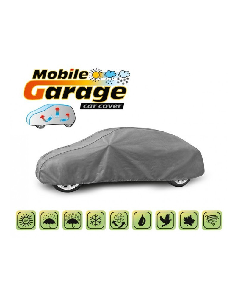 A magas minőségű, autókra való MOBILE GARAGE huzatok vízhatlanok, de páraáteresztőek. A huzat négyrétegű, vízhatlan, páraáteresztő membránból és nehezen vizesedő, de magas páraáteresztő képességgel rendelkező anyagokból készült, majdnem teljesen szoros, de ugyanakkor elvezeti a huzat alatt összegyűlő nedvet. Az egész kocsit, az alsó részével együtt védi a kedvezőtlen környezeti hatásoktól. A huzatok UV-sugárzás ellenállóak. A rögzítésük kocsit körbefogó zsinórral történik, megfelelően összekötve biztosítják a kocsit erős szél esetében is. Mivel az ajánlatunkban több alakban és méretben találhatóak, különböző kocsikhoz illenek. A 30 hónapra szóló garanciának köszönhetően biztos lehet abban, hogy a legmagasabb minőségű terméket vásárolja.
