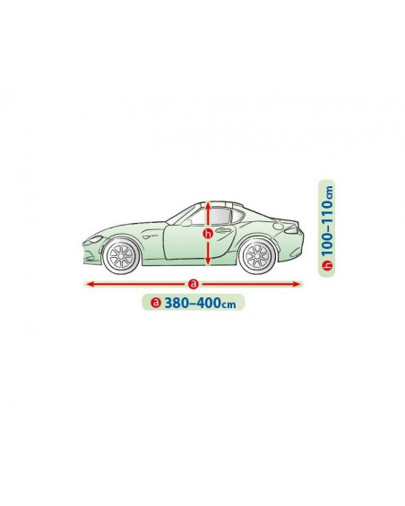 A ponyva textilanyaga egy kicsivel kisebb és egy kicsivel nagyobb, hasonló alakú és a fent megadott kerületet nem meghaladó méretű autóra is ráillik.