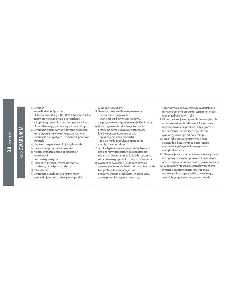 • Gyártó: Kegel-Błażusiak Sp. z o.o., KEGEL-BŁAŻUSIAK, ul. Składowa 26, 34-400 Nowy Targ, Polska, e-mail: info@kegel24.pl