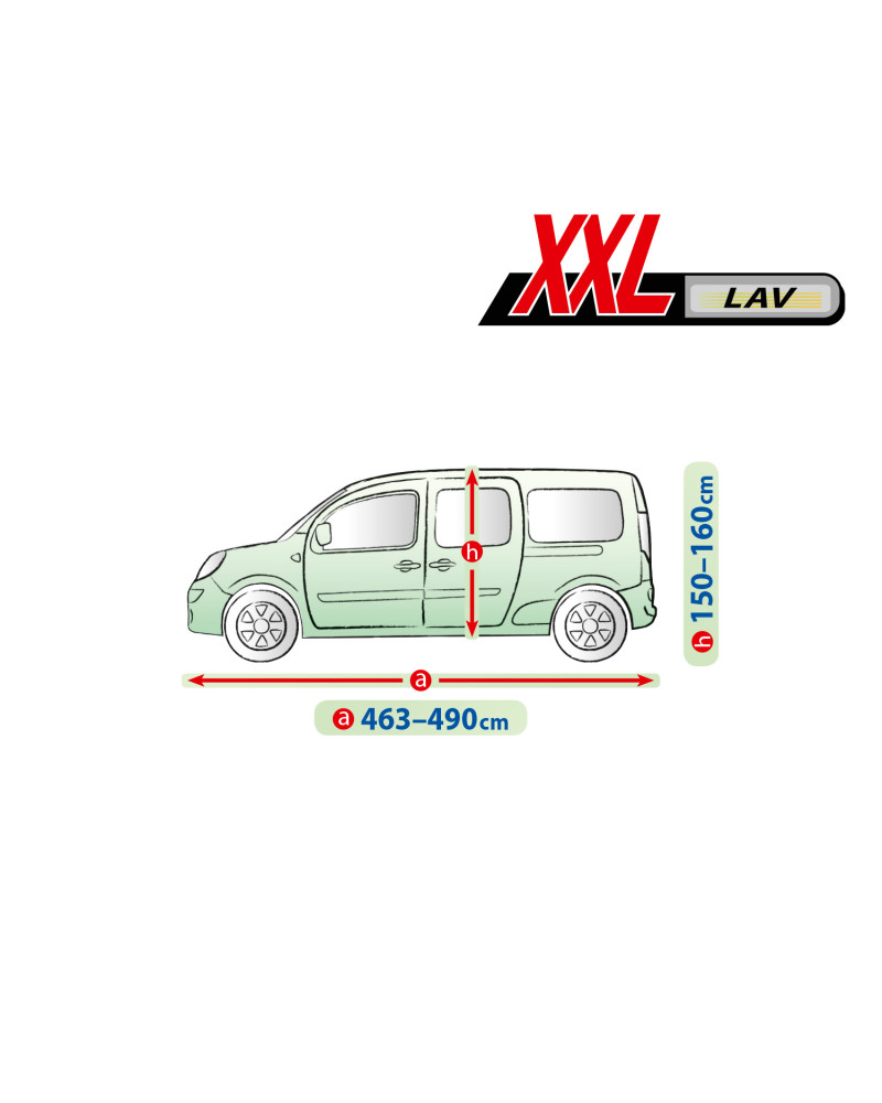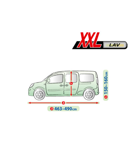 • Az alábbi méretekkel rendelkező járművekhez illik: hossza 463-490 cm, maximális kerület 1182 cm