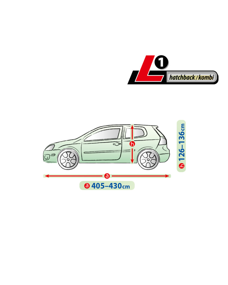 • Az alábbi méretekkel rendelkező járművekhez illik: hossza 405-430 cm, maximális kerület 1156 cm