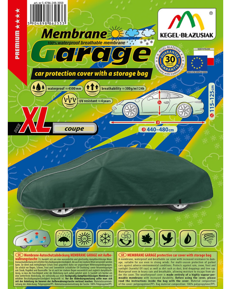 Membrános, vízálló, mégis páraáteresztő autóhuzat. Még intenzív eső esetén is vízálló, ugyanakkor páraáteresztő, mely elvezeti a nedvességet a huzat alól. Időjárásálló huzat, amely teljes egészében nagyfokú páraáteresztő membránból készült. Védelmet nyújt az eső, a hó, a fagy és a (káros UV) napsugarak ellen, valamint az olyan szennyező anyagok, például a por, a madárürülék és a fanedvek ellen.