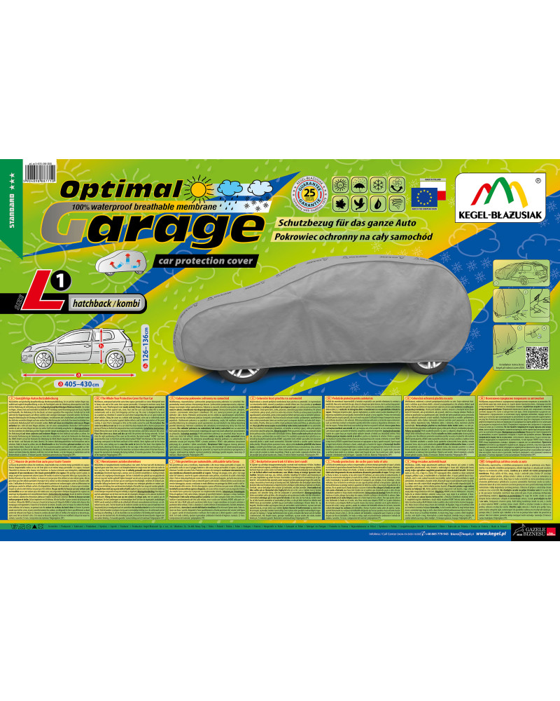 Membrános, vízálló, mégis páraáteresztő autóhuzat Optimal Garage. Még intenzív eső esetén is vízálló, ugyanakkor páraáteresztő, mely elvezeti a nedvességet a huzat alól. Időjárásálló huzat, amely teljes egészében nagyfokú páraáteresztő membránból készült. Védelmet nyújt az eső, a hó, a fagy és a (káros UV) napsugarak ellen, valamint az olyan szennyező anyagok, például a por, a madárürülék és a fanedvek ellen.