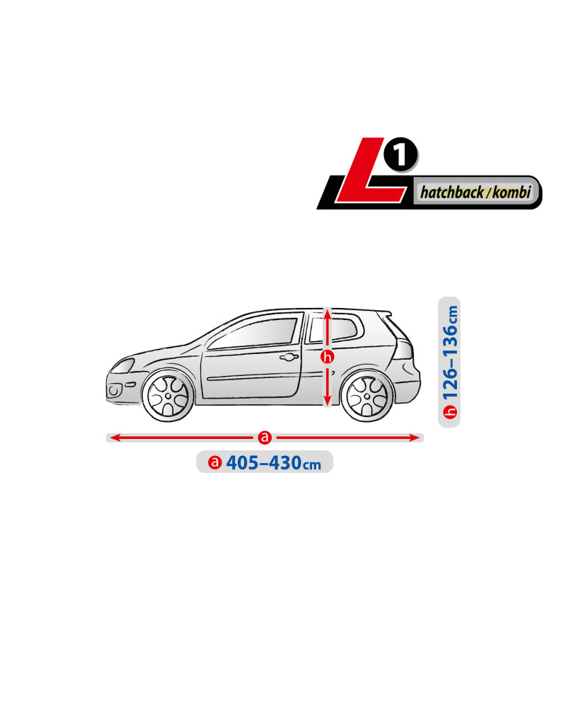 A ponyva textilanyaga egy kicsivel kisebb és egy kicsivel nagyobb, hasonló alakú és a fent megadott kerületet nem meghaladó méretű autóra is ráillik.