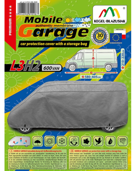 A magas minőségű, autókra való MOBILE GARAGE huzatok vízhatlanok, de páraáteresztőek. A huzat négyrétegű, vízhatlan, páraáteresztő membránból és nehezen vizesedő, de magas páraáteresztő képességgel rendelkező anyagokból készült, majdnem teljesen szoros, de ugyanakkor elvezeti a huzat alatt összegyűlő nedvet. Az egész kocsit, az alsó részével együtt védi a kedvezőtlen környezeti hatásoktól. A huzatok UV-sugárzás ellenállóak. A rögzítésük kocsit körbefogó zsinórral történik, megfelelően összekötve biztosítják a kocsit erős szél esetében is. Mivel az ajánlatunkban több alakban és méretben találhatóak, különböző kocsikhoz illenek. A 30 hónapra szóló garanciának köszönhetően biztos lehet abban, hogy a legmagasabb minőségű terméket vásárolja.