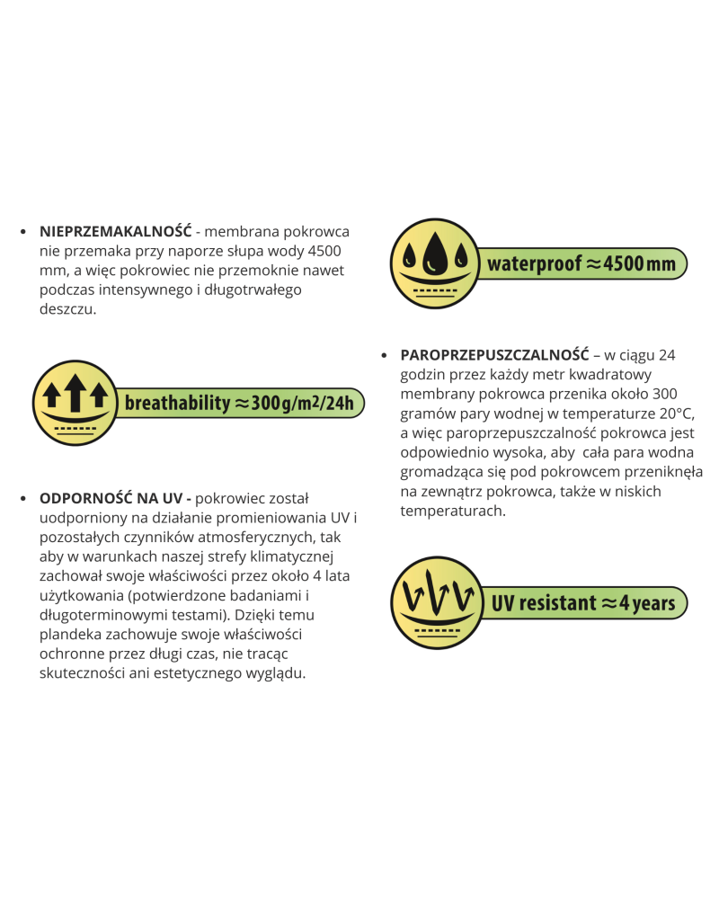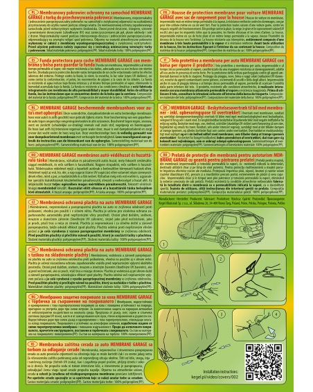 Membrános, vízálló, mégis páraáteresztő autóhuzat. Még intenzív eső esetén is vízálló, ugyanakkor páraáteresztő, mely elvezeti a nedvességet a huzat alól. Időjárásálló huzat, amely teljes egészében nagyfokú páraáteresztő membránból készült. Védelmet nyújt az eső, a hó, a fagy és a (káros UV) napsugarak ellen, valamint az olyan szennyező anyagok, például a por, a madárürülék és a fanedvek ellen.