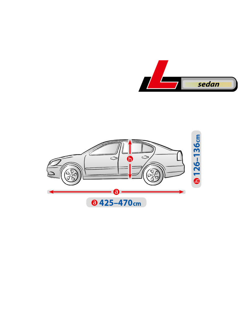 A ponyva textilanyaga egy kicsivel kisebb és egy kicsivel nagyobb, hasonló alakú és a fent megadott kerületet nem meghaladó méretű autóra is ráillik.