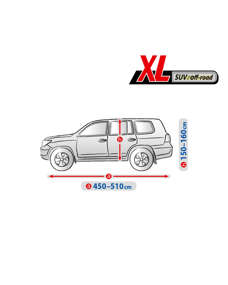 A ponyva textilanyaga egy kicsivel kisebb és egy kicsivel nagyobb, hasonló alakú és a fent megadott kerületet nem meghaladó méretű autóra is ráillik.