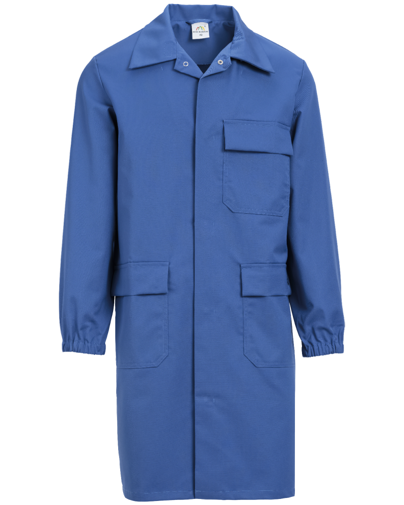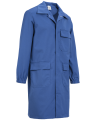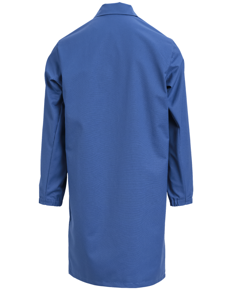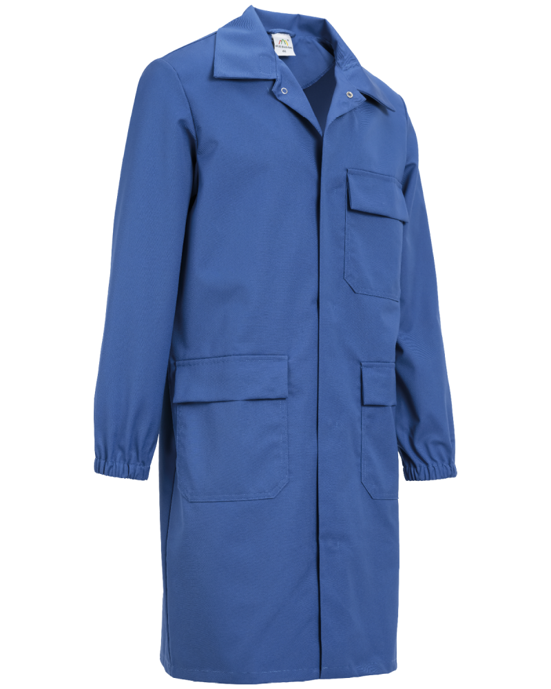 • A kötény egyenes szabású, és fedett, nyakig érő patentgombokkal rendelkezik.