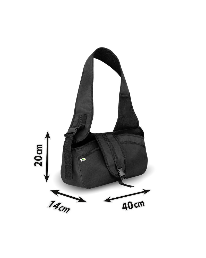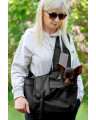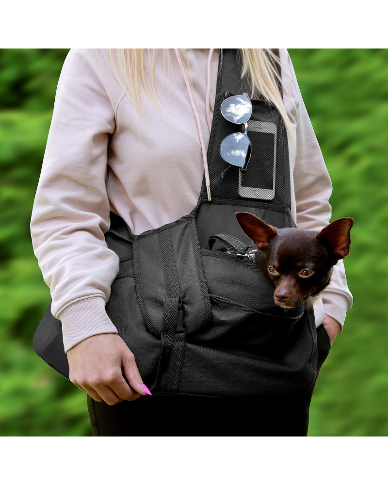 Kényelmes és praktikus táska a kistestű kutyák komfortos hordozásához. A hordozás egyaránt kényelmes a kutya és a tulajdonos számára is. A hordozó aljzata erős, a kutyusok számára biztonságos teret biztosít. Az ergonomikus, széles és szabályozható vállpántnak köszönhetően pedig a tulajdonosnak is komfortos. Hordozás közben a pánt nem vágja a használó vállát, akár hosszú séták során sem. Az alapos tervezésű szerkezetnek köszönhetően a kutyák a hordozóban biztonságban és komfortosan érzik magukat, a tulajdonos közelsége pedig csak fokozza a biztonságérzetüket. A hordozó vastagított aljzattal (padlózattal) rendelkezik, így a kutya alatt lévő réteg erős. A hordozó különböző kis zsebekkel van ellátva, melyekben a gazdi okostelefonja, póráz, jutalomfalatok stb. mind-mind megtalálják a helyüket. A táska nemcsak könnyű és komfortos hordozást biztosít, hanem szabaddá teszi a használó kezét, mind a két keze szabadon van.