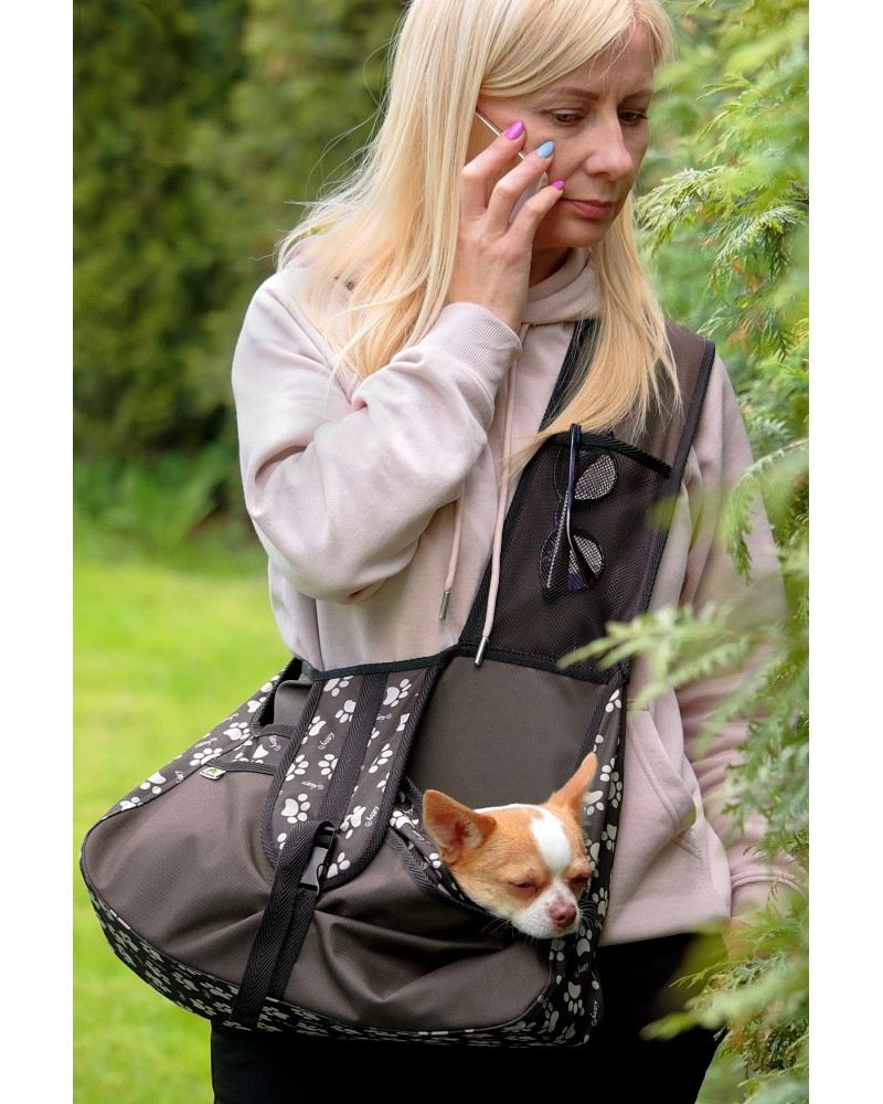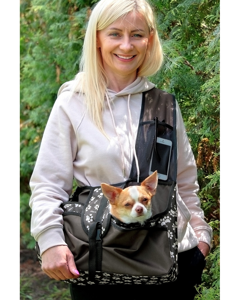 Kényelmes és praktikus táska a kistestű kutyák komfortos hordozásához. A hordozás egyaránt kényelmes a kutya és a tulajdonos számára is. A hordozó aljzata erős, a kutyusok számára biztonságos teret biztosít. Az ergonomikus, széles és szabályozható vállpántnak köszönhetően pedig a tulajdonosnak is komfortos. Hordozás közben a pánt nem vágja a használó vállát, akár hosszú séták során sem. Az alapos tervezésű szerkezetnek köszönhetően a kutyák a hordozóban biztonságban és komfortosan érzik magukat, a tulajdonos közelsége pedig csak fokozza a biztonságérzetüket. A hordozó vastagított aljzattal (padlózattal) rendelkezik, így a kutya alatt lévő réteg erős. A hordozó különböző kis zsebekkel van ellátva, melyekben a gazdi okostelefonja, póráz, jutalomfalatok stb. mind-mind megtalálják a helyüket. A táska nemcsak könnyű és komfortos hordozást biztosít, hanem szabaddá teszi a használó kezét, mind a két keze szabadon van.