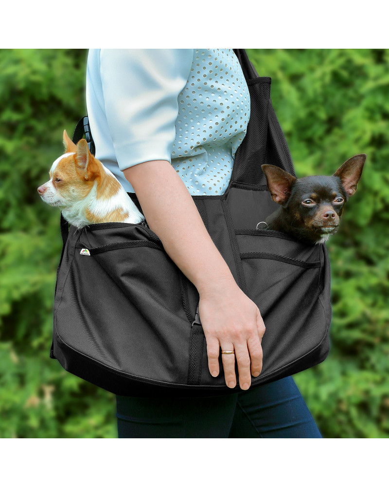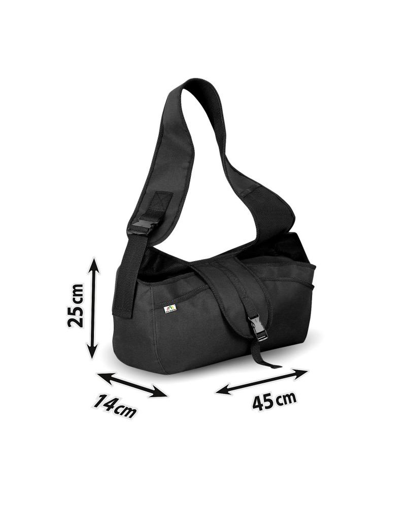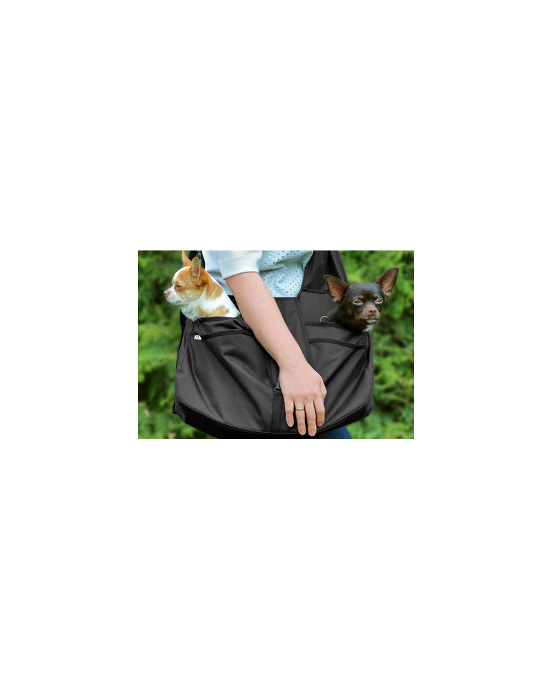 Kényelmes és praktikus táska a kistestű kutyák komfortos hordozásához. A hordozás egyaránt kényelmes a kutya és a tulajdonos számára is. A hordozó aljzata erős, a kutyusok számára biztonságos teret biztosít. Az ergonomikus, széles és szabályozható vállpántnak köszönhetően pedig a tulajdonosnak is komfortos. Hordozás közben a pánt nem vágja a használó vállát, akár hosszú séták során sem. Az alapos tervezésű szerkezetnek köszönhetően a kutyák a hordozóban biztonságban és komfortosan érzik magukat, a tulajdonos közelsége pedig csak fokozza a biztonságérzetüket. A hordozó vastagított aljzattal (padlózattal) rendelkezik, így a kutya alatt lévő réteg erős. A hordozó különböző kis zsebekkel van ellátva, melyekben a gazdi okostelefonja, póráz, jutalomfalatok stb. mind-mind megtalálják a helyüket. A táska nemcsak könnyű és komfortos hordozást biztosít, hanem szabaddá teszi a használó kezét, mind a két keze szabadon van.