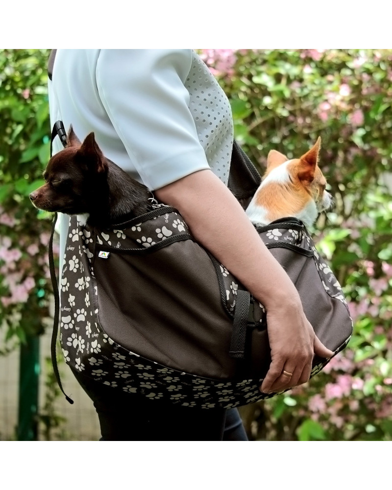 Kényelmes és praktikus táska a kistestű kutyák komfortos hordozásához. A hordozás egyaránt kényelmes a kutya és a tulajdonos számára is. A hordozó aljzata erős, a kutyusok számára biztonságos teret biztosít. Az ergonomikus, széles és szabályozható vállpántnak köszönhetően pedig a tulajdonosnak is komfortos. Hordozás közben a pánt nem vágja a használó vállát, akár hosszú séták során sem. Az alapos tervezésű szerkezetnek köszönhetően a kutyák a hordozóban biztonságban és komfortosan érzik magukat, a tulajdonos közelsége pedig csak fokozza a biztonságérzetüket. A hordozó vastagított aljzattal (padlózattal) rendelkezik, így a kutya alatt lévő réteg erős. A hordozó különböző kis zsebekkel van ellátva, melyekben a gazdi okostelefonja, póráz, jutalomfalatok stb. mind-mind megtalálják a helyüket. A táska nemcsak könnyű és komfortos hordozást biztosít, hanem szabaddá teszi a használó kezét, mind a két keze szabadon van.