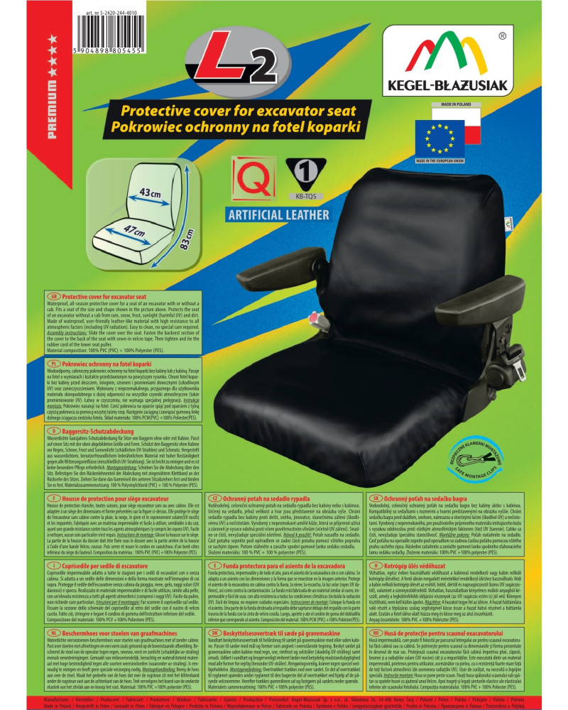 Vízálló, egész évben használható védőhuzat fülkével rendelkező vagy fülke nélküli kotrógépek ülésére. Jól illeszkedik a fenti ábrán bemutatott fotel alakjához és méreteihez. Védi a kotrógép ülését a szennyeződésektől, kopástól, illetve a fülke nélküli kotrógépek esetében az esőtől, hótól, dértől, napsugárzástól (káros UV-sugárzástól), illetve folyadékoktól és egyéb szennyeződésektől.
