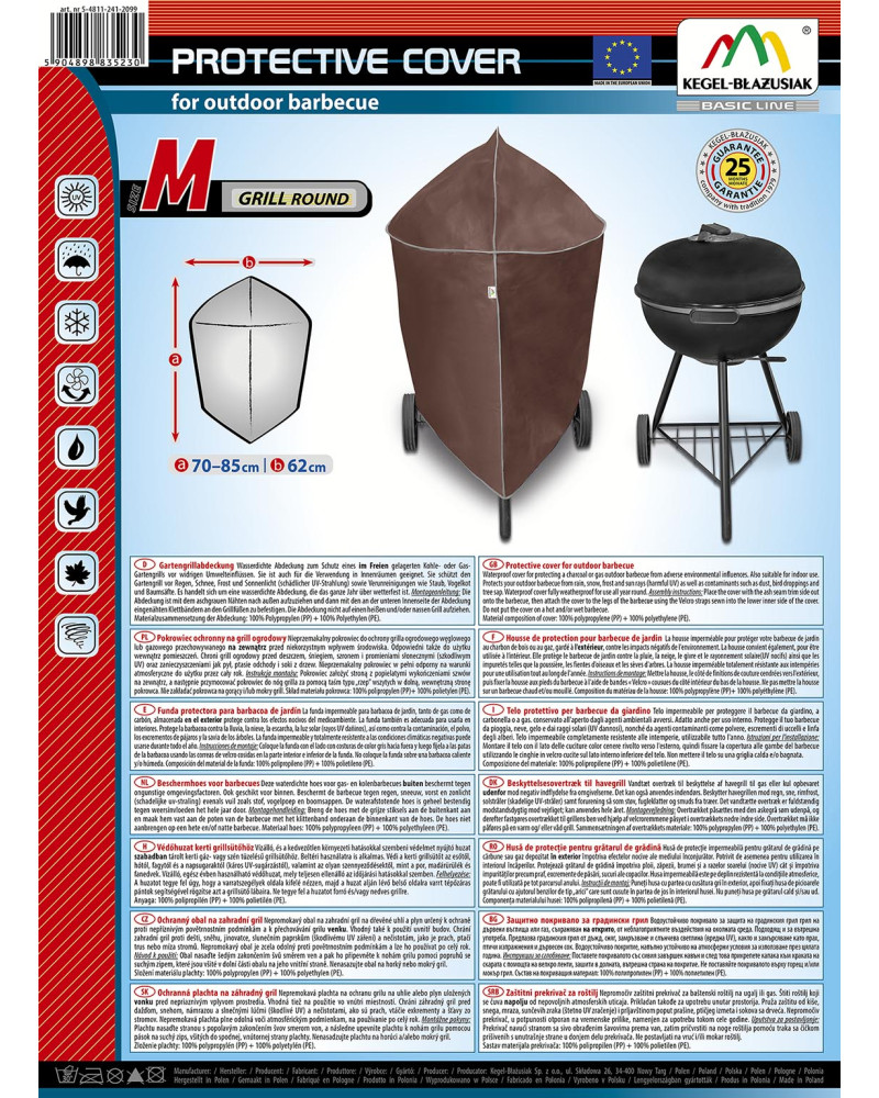 Vízálló, és a kedvezőtlen környezeti hatásokkal szembeni védelmet nyújtó huzat szabadban tárolt kerti gáz- vagy szén tüzelésű grillsütőhöz. Beltéri használatra is alkalmas. Védi a kerti grillsütőt az esőtől, hótól, fagytól és a napsugaraktól (káros UV-sugárzástól), valamint az olyan szennyeződésektől, mint a por, madárürülék és fanedvek. Vízálló, egész évben használható védőhuzat, mely teljesen ellenálló az időjárási hatásokkal szemben.