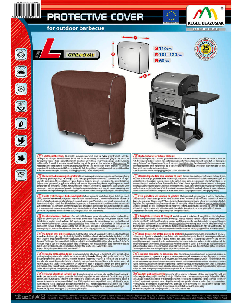 Vízálló, és a kedvezőtlen környezeti hatásokkal szembeni védelmet nyújtó huzat szabadban tárolt kerti gáz- vagy szén tüzelésű grillsütőhöz. Beltéri használatra is alkalmas. Védi a kerti grillsütőt az esőtől, hótól, fagytól és a napsugaraktól (káros UV-sugárzástól), valamint az olyan szennyeződésektől, mint a por, madárürülék és fanedvek. Vízálló, egész évben használható védőhuzat, mely teljesen ellenálló az időjárási hatásokkal szemben.