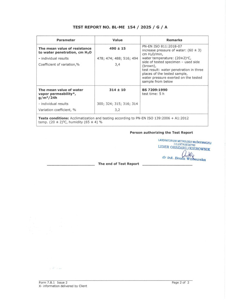még erős eső esetén is vízálló, ugyanakkor páraáteresztő, így elvezeti a nedvességet a huzat alól