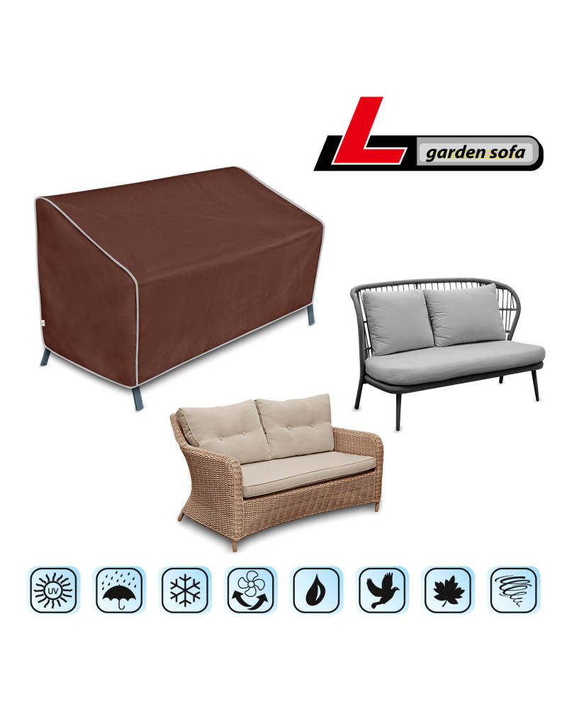 Egész évben használható védőhuzat a szabadban tárolt kerti kanapé védelmére a káros környezeti hatásokkal szemben. Speciális kialakításának köszönhetően eső esetén a víz lefolyik a huzatról anélkül, hogy bejutna a huzat alá. A huzat védi a kanapét az esőtől, hótól, fagytól és a napfénytől (káros UV-sugárzás), valamint az olyan szennyeződésektől, mint a por, madárürülék és fanedvek. Csökkenti a korróziót és a fa vagy műanyag alkatrészek öregedését, illetve védi a lakkozott és krómozott felületeket a fakulás és mattá válással szemben. A huzat teljes mértékben ellenálló minden időjárási körülménnyel szemben. Könnyen fel- és levehető. A plusz rögzítőelemek megakadályozzák, hogy a szél letépje a huzatot. Beltéri használatra is alkalmas.