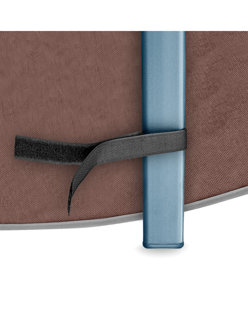 A huzatot a galambszürke varratszegélyek oldalával kifelé fordítva tegye fel, majd rögzítse a huzatot a kanapéhoz úgy, hogy a huzat alsó belső oldalára varrt tépőzáras szalagokat a kanapé lábaira rögzíti. Ne használja a huzatot szállításkor, ha a jármű fedetlen, külső csomagtartóján szeretné szállítani a kanapét.