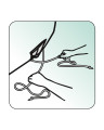 A szürke varrású oldallal kifelé fordítva tegye fel a huzatot a vázra és a fotelre, úgy, hogy a huzat alsó zsebe a szék elején legyen. Rögzítse a huzatot a vázhoz a huzat alsó, belső oldalába varrt tépőzáras szalagokkal. Keresztezze össze a húzózsinórokat, majd húzza meg erősen, párhuzamosan a szék elülső részével (lásd 1. ábra). Kösse össze a húzózsinórokat, és ellenőrizze, hogy a csomó nem lazul-e meg, ha meghúzza a húzózsinórt. Ha a csomó meglazul, ismételje meg a műveletet, de más módon kösse meg a csomót. A csomót a zsinórokkal együtt csúsztassa be a huzat zsebébe.