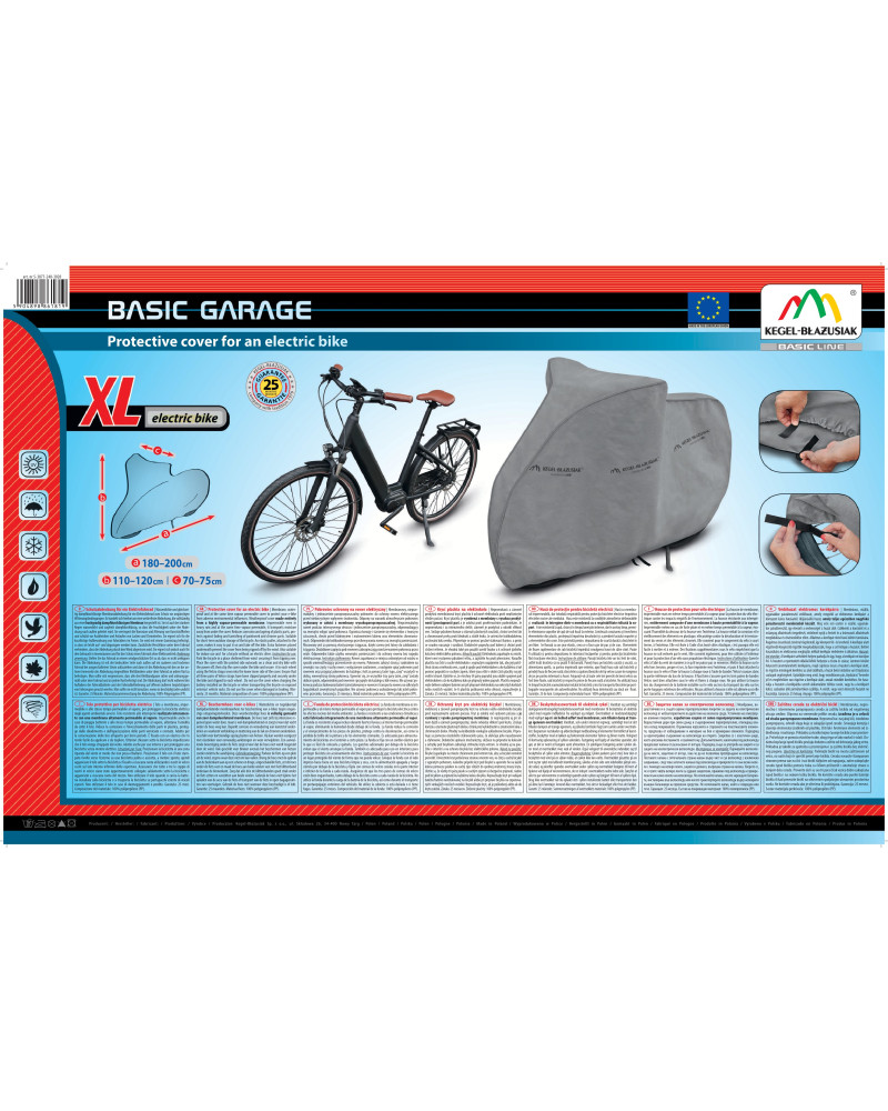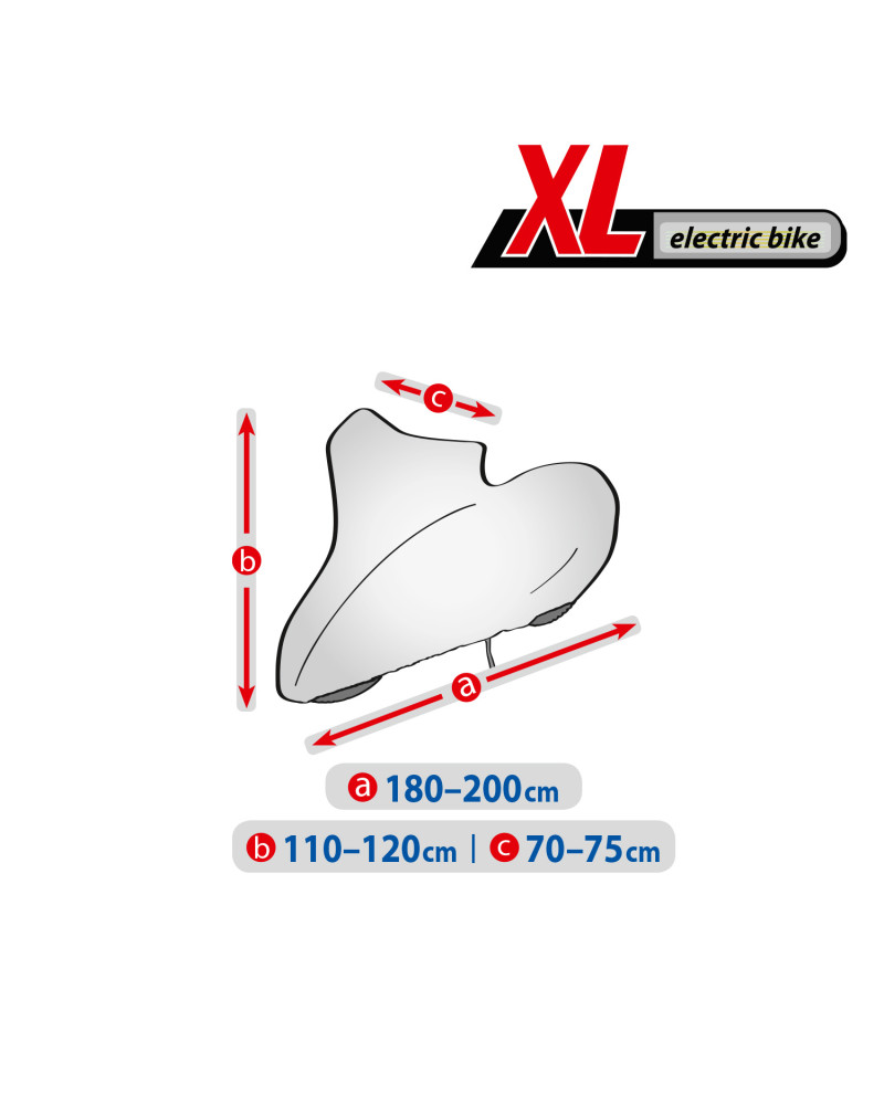 Rugalmas összehúzó zsinórral rögzítendő, így könnyen fel- és levehető. A kerékpár kerekeihez való rögzítő elemek, illetve a kerékpár alatt megerősítendő kiegészítő rögzítők megakadályozzák, hogy a szél letépje a huzatot. Beltéri használatra és elektromos meghajtás nélküli kerékpár védelmére is alkalmas.