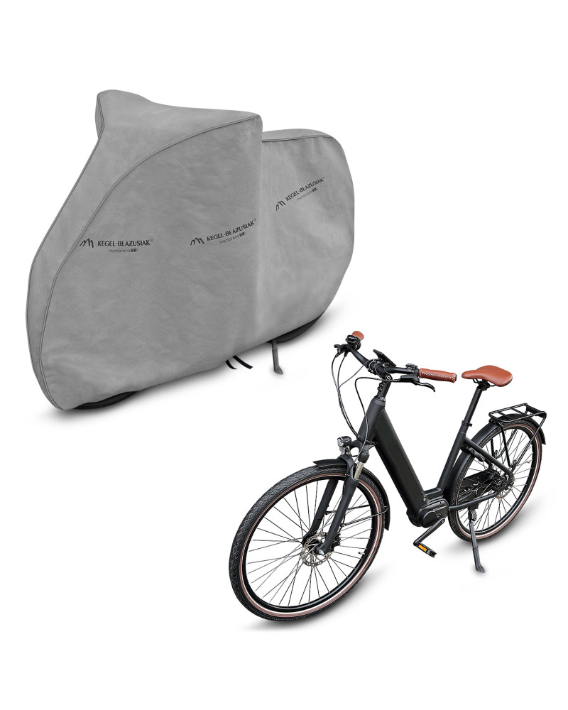 Membrános, vízálló, ugyanakkor páraáteresztő védőhuzat, amely megvédi az elektromos kerékpárt a környezet káros hatásaitól. Időjárásálló huzat, amely teljes egészében nagyfokú páraáteresztő membránból készült. Még erős eső esetén is vízálló, ugyanakkor páraáteresztő, így elvezeti a nedvességet a huzat alól. Csökkenti a korróziót és a műanyag alkatrészek öregedését, védelmet nyújt a festett és a krómozott alkatrészek megfakulása és elszíneződése ellen. Alkalmas a kerékpár rövid távú kültéri tárolására.