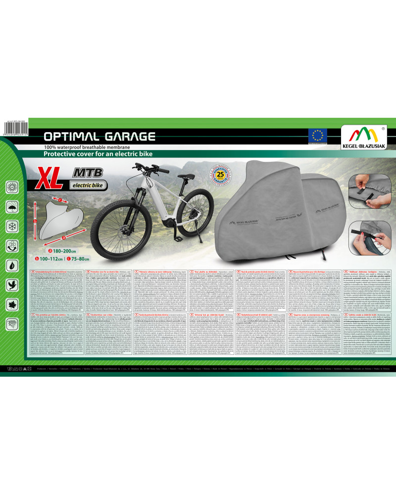Membrános, vízálló, ugyanakkor páraáteresztő védőhuzat, amely megvédi az elektromos kerékpárt a környezet káros hatásaitól. Időjárásálló huzat, amely teljes egészében nagyfokú páraáteresztő membránból készült. Még erős eső esetén is vízálló, ugyanakkor páraáteresztő, így elvezeti a nedvességet a huzat alól. Csökkenti a korróziót és a műanyag alkatrészek öregedését, védelmet nyújt a festett és a krómozott alkatrészek megfakulása és elszíneződése ellen. Alkalmas a kerékpár rövid távú kültéri tárolására.