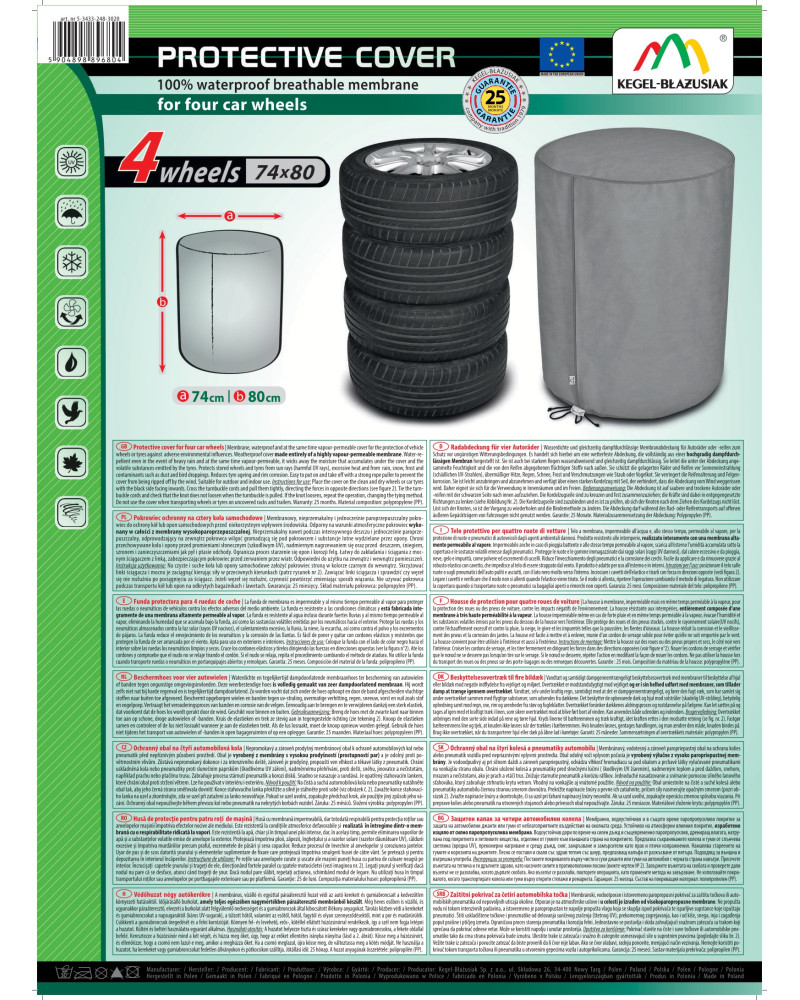 A membrános, vízálló és egyúttal páraáteresztő huzat védi az autó kerekeit és gumiabroncsait a kedvezőtlen környezeti hatásoktól. Időjárásálló burkolat, amely teljes egészében nagymértékben páraáteresztő membránból készült. Még heves esőben is vízálló, és ugyanakkor páraáteresztő, elvezeti a burkolat alatt felgyülemlő nedvességet és a gumiabroncsok által kibocsátott illékony anyagokat. Tárolás közben védi a kerekeket és gumiabroncsokat a napsugaraktól (káros UV-sugarak), a túlzott hőtől, valamint az esőtől, hótól, fagytól és olyan szennyeződésektől, mint a por és madárürülék.