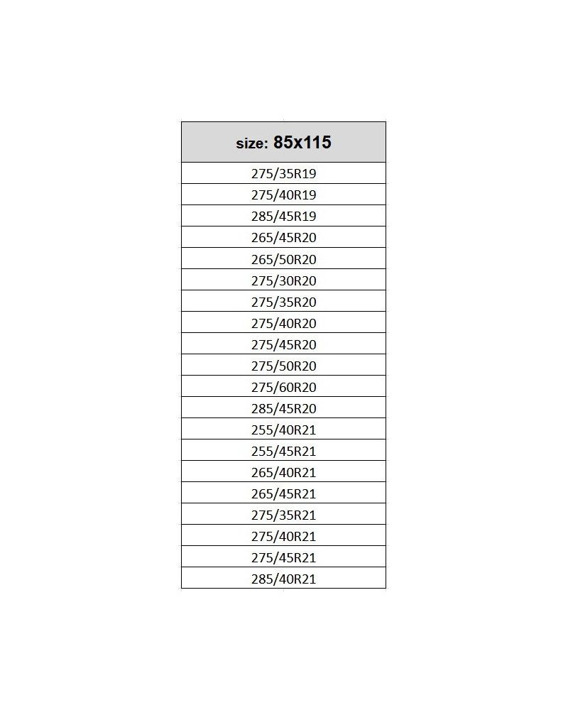 275/35R19, 275/40R19, 285/45R19, 265/45R20, 265/50R20, 275/30R20, 275/35R20, 275/40R20, 275/45R20, 275/50R20, 275/60R20, 285/45R20, 255/40R21, 255/45R21, 265/40R21, 265/45R21, 275/35R21, 275/40R21, 275/45R21, 285/40R21.
