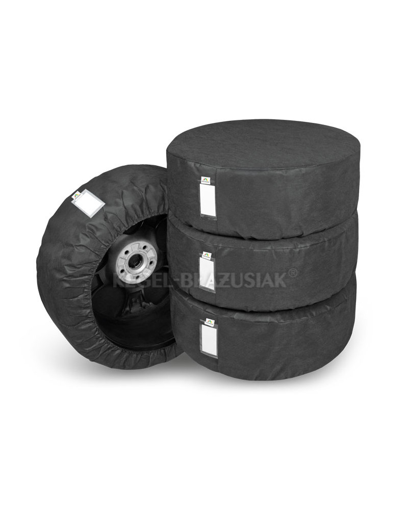 Magas minőségű SEASON huzatnak a készlete – mely a kerekek és gumik szezonális tárolására szolgál, főleg azokra, melyek alumíniumabroncsokkal rendelkeznek. Vizet nehezen áteresztő, párát viszont áteresztő anyagból készültek, mely biztosítja a megfelelő levegőáramlást a huzatokon belül, és megakadályozza a rozsdásodást. Nagyon szépen mutatnak a garázsban. A kerekekre nem száll a por hosszabb tárolás idején sem. Miután leveszik a huzatot, a kerekek/gumik újnak tűnnek – olyan állapotban lesznek, amelyben hagytuk őket. A huzatok nagyon jól védik a ruházatot az alatt az idő alatt, amikor át kell pakolni a kerekeket. A huzatok a kerekek címkéinek elhelyezésére szolgáló zsebbel rendelkeznek. Nagyon könnyű feltenni és levenni őket. A huzatok a csomagtartóban való pótkerekek tárolására is szolgálhatnak. Védeni fogják a kocsinak a kárpitját kerékről/gumiról származó kosztól. Védik a koszolódástól a szállított csomagokat is. A huzatok alkalmasak azokba a kocsikba is, melyek LPG hálózattal rendelkeznek, melyekben a gáztartályt a pótkerékre való bemélyedésnél helyezték el. A huzatok erős, vastag szövetből készültek – vizet nehezen áteresztő, de páraáteresztő anyagból, melyre hosszú élettartam jellemző. A szövet „levegőzik”, aminek köszönhetően el lehet elkerülni azt, hogy a huzatban összegyűljön a pára. A szürke színű szövetre majdnem 100% színmegtartás jellemző. A szín tökéletesen illik a legtöbb belső térhez.
