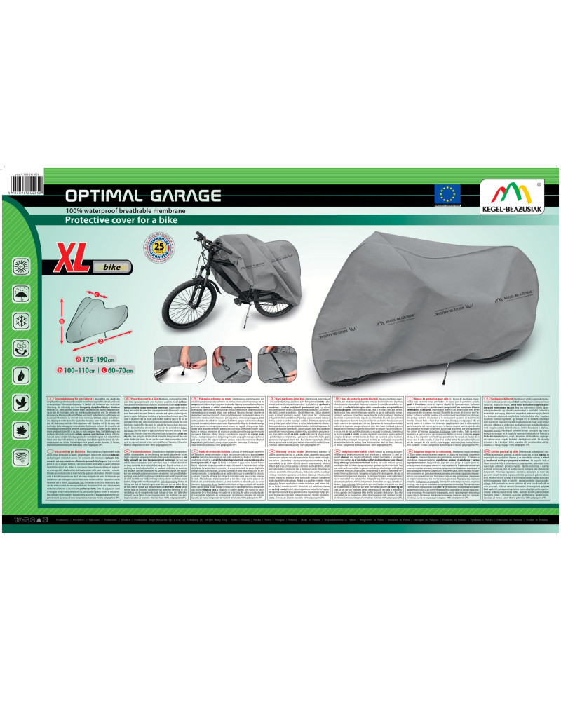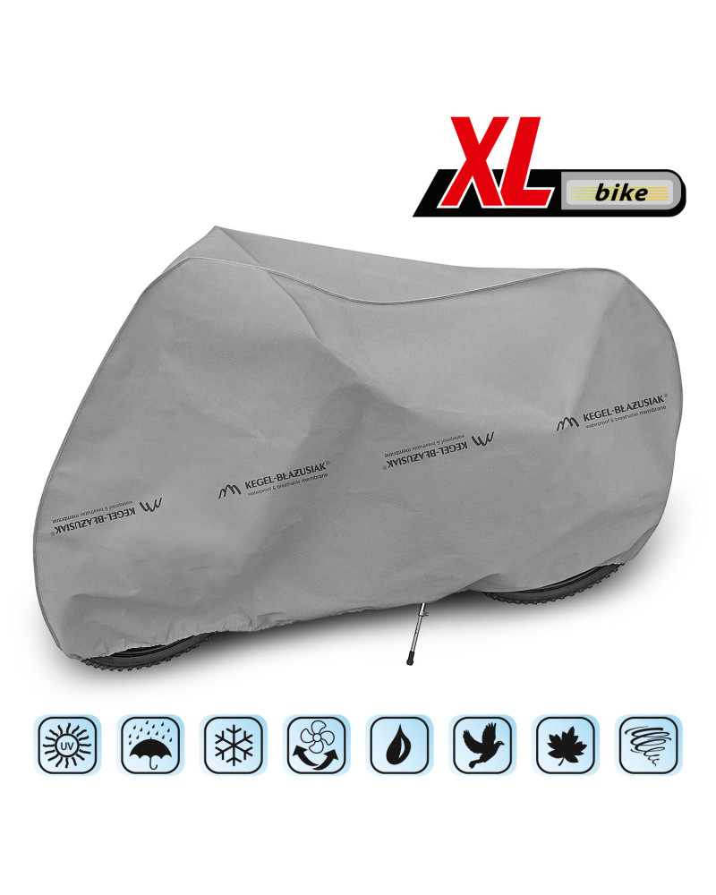 Membrános, vízálló, ugyanakkor páraáteresztő védőhuzat, amely megvédi kint tárolt kerékpárt a környezet káros hatásaitól. Időjárásálló huzat, amely teljes egészében nagyfokú páraáteresztő membránból készült. Még erős eső esetén is vízálló, ugyanakkor páraáteresztő, így elvezeti a nedvességet a huzat alól. Csökkenti a korróziót és a műanyag alkatrészek öregedését, védelmet nyújt a festett és a krómozott alkatrészek megfakulása és elszíneződése ellen. Rugalmas összehúzó zsinórral rögzítendő, így könnyen fel- és levehető. A kerékpár alatt rögzítendő kiegészítő rögzítők megakadályozzák, hogy a szél letépje a huzatot. Alkalmas az elektromos meghajtással nem rendelkező kerékpár rövid- vagy hosszútávú kültéri tárolására. Beltéri használatra is alkalmas.