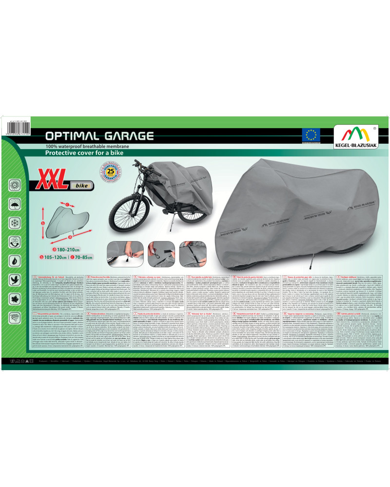 Membrános, vízálló, ugyanakkor páraáteresztő védőhuzat, amely megvédi kint tárolt kerékpárt a környezet káros hatásaitól. Időjárásálló huzat, amely teljes egészében nagyfokú páraáteresztő membránból készült. Még erős eső esetén is vízálló, ugyanakkor páraáteresztő, így elvezeti a nedvességet a huzat alól. Csökkenti a korróziót és a műanyag alkatrészek öregedését, védelmet nyújt a festett és a krómozott alkatrészek megfakulása és elszíneződése ellen. Rugalmas összehúzó zsinórral rögzítendő, így könnyen fel- és levehető. A kerékpár alatt rögzítendő kiegészítő rögzítők megakadályozzák, hogy a szél letépje a huzatot. Alkalmas az elektromos meghajtással nem rendelkező kerékpár rövid- vagy hosszútávú kültéri tárolására. Beltéri használatra is alkalmas.