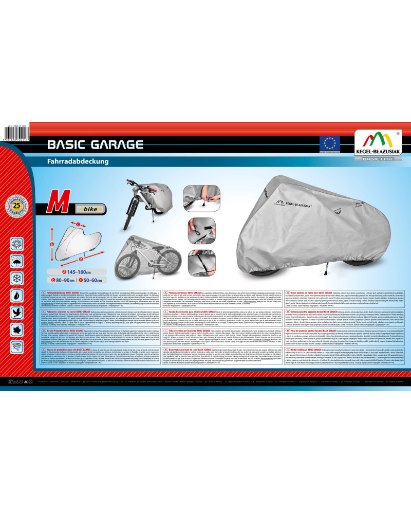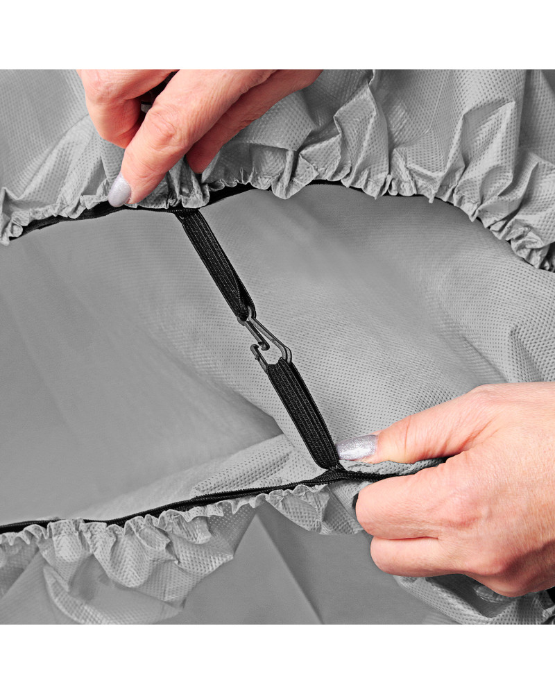 Membrános, vízálló, ugyanakkor páraáteresztő védőhuzat, amely megvédi kint tárolt kerékpárt a környezet káros hatásaitól. Időjárásálló huzat, amely teljes egészében nagyfokú páraáteresztő membránból készült. Még erős eső esetén is vízálló, ugyanakkor páraáteresztő, így elvezeti a nedvességet a huzat alól. Csökkenti a korróziót és a műanyag alkatrészek öregedését, védelmet nyújt a festett és a krómozott alkatrészek megfakulása és elszíneződése ellen. Rugalmas összehúzó zsinórral rögzítendő, így könnyen fel- és levehető. A kerékpár alatt rögzítendő kiegészítő rögzítők megakadályozzák, hogy a szél letépje a huzatot. Alkalmas az elektromos meghajtással nem rendelkező kerékpár rövid- vagy hosszútávú kültéri tárolására. Beltéri használatra is alkalmas.