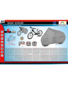 Membrános, vízálló, ugyanakkor páraáteresztő védőhuzat, amely megvédi kint tárolt kerékpárt a környezet káros hatásaitól. Időjárásálló huzat, amely teljes egészében nagyfokú páraáteresztő membránból készült. Még erős eső esetén is vízálló, ugyanakkor páraáteresztő, így elvezeti a nedvességet a huzat alól. Csökkenti a korróziót és a műanyag alkatrészek öregedését, védelmet nyújt a festett és a krómozott alkatrészek megfakulása és elszíneződése ellen. Rugalmas összehúzó zsinórral rögzítendő, így könnyen fel- és levehető. A kerékpár alatt rögzítendő kiegészítő rögzítők megakadályozzák, hogy a szél letépje a huzatot. Alkalmas az elektromos meghajtással nem rendelkező kerékpár rövid- vagy hosszútávú kültéri tárolására. Beltéri használatra is alkalmas.