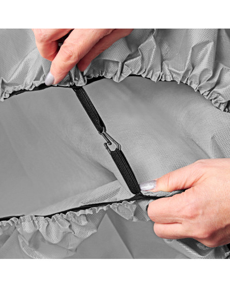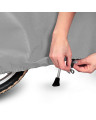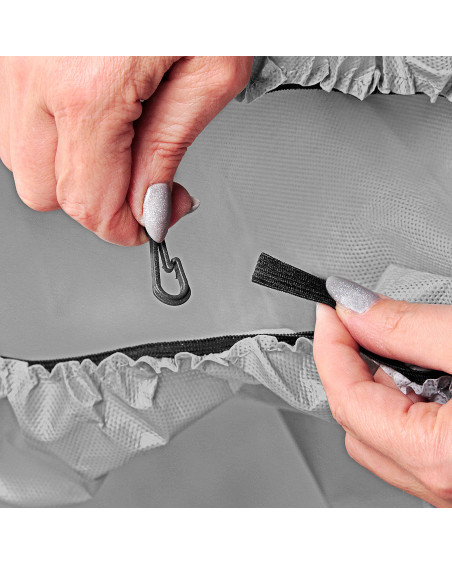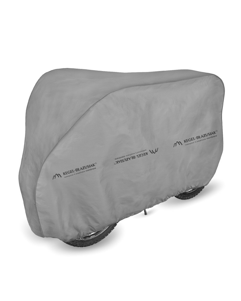 Membrános, vízálló, ugyanakkor páraáteresztő védőhuzat, amely megvédi kint tárolt kerékpárt a környezet káros hatásaitól. Időjárásálló huzat, amely teljes egészében nagyfokú páraáteresztő membránból készült. Még erős eső esetén is vízálló, ugyanakkor páraáteresztő, így elvezeti a nedvességet a huzat alól. Csökkenti a korróziót és a műanyag alkatrészek öregedését, védelmet nyújt a festett és a krómozott alkatrészek megfakulása és elszíneződése ellen. Rugalmas összehúzó zsinórral rögzítendő, így könnyen fel- és levehető. A kerékpár alatt rögzítendő kiegészítő rögzítők megakadályozzák, hogy a szél letépje a huzatot. Alkalmas az elektromos meghajtással nem rendelkező kerékpár rövid- vagy hosszútávú kültéri tárolására. Beltéri használatra is alkalmas.