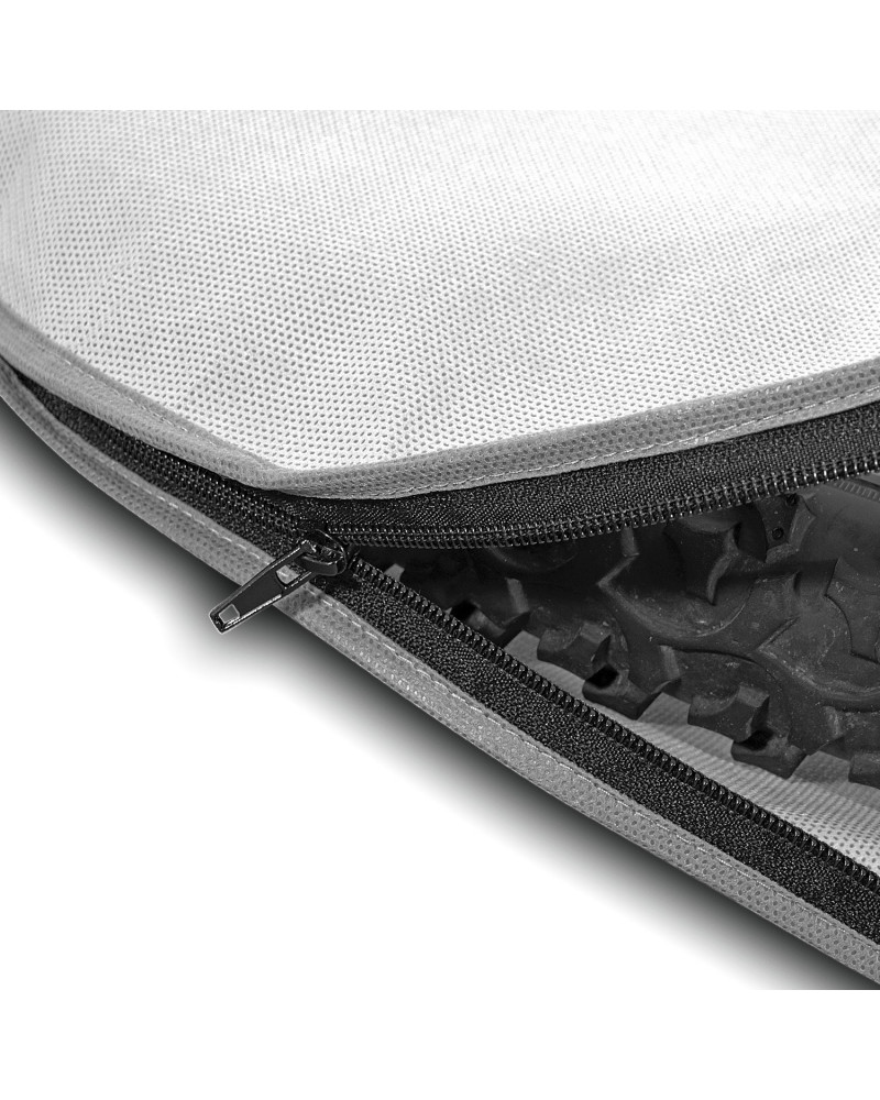 A védőhuzat a biciklik belső terekben történő szállítása során esetlegesen keletkező sérüléseitől, szennyeződéseitől véd, továbbá a kerekek beltéri és kültéri tárolása során is használható. Jól védi a pajzsfékkel rendelkező kereket is. Megfelelő védelmet biztosít a külső hatások ellen, és a kerekekből hulló szennyeződések ellen is. A huzat hosszú cipzárral nyitható, ennek köszönhetően nagyon könnyen feltehető és a cipzár lezárása után jól zár. A bevarrt fogónak köszönhetően a kerék mozgatása nagyon könnyű. A huzat mérsékelten vízálló, de páraáteresztő, illetve ellenálló az időjárási körülményekkel szemben. A nagyobb légellenállás miatt a huzat nem alkalmas arra, hogy külső biciklitartón való szállítás során is alkalmazható legyen. Garancia: 25 hónap.